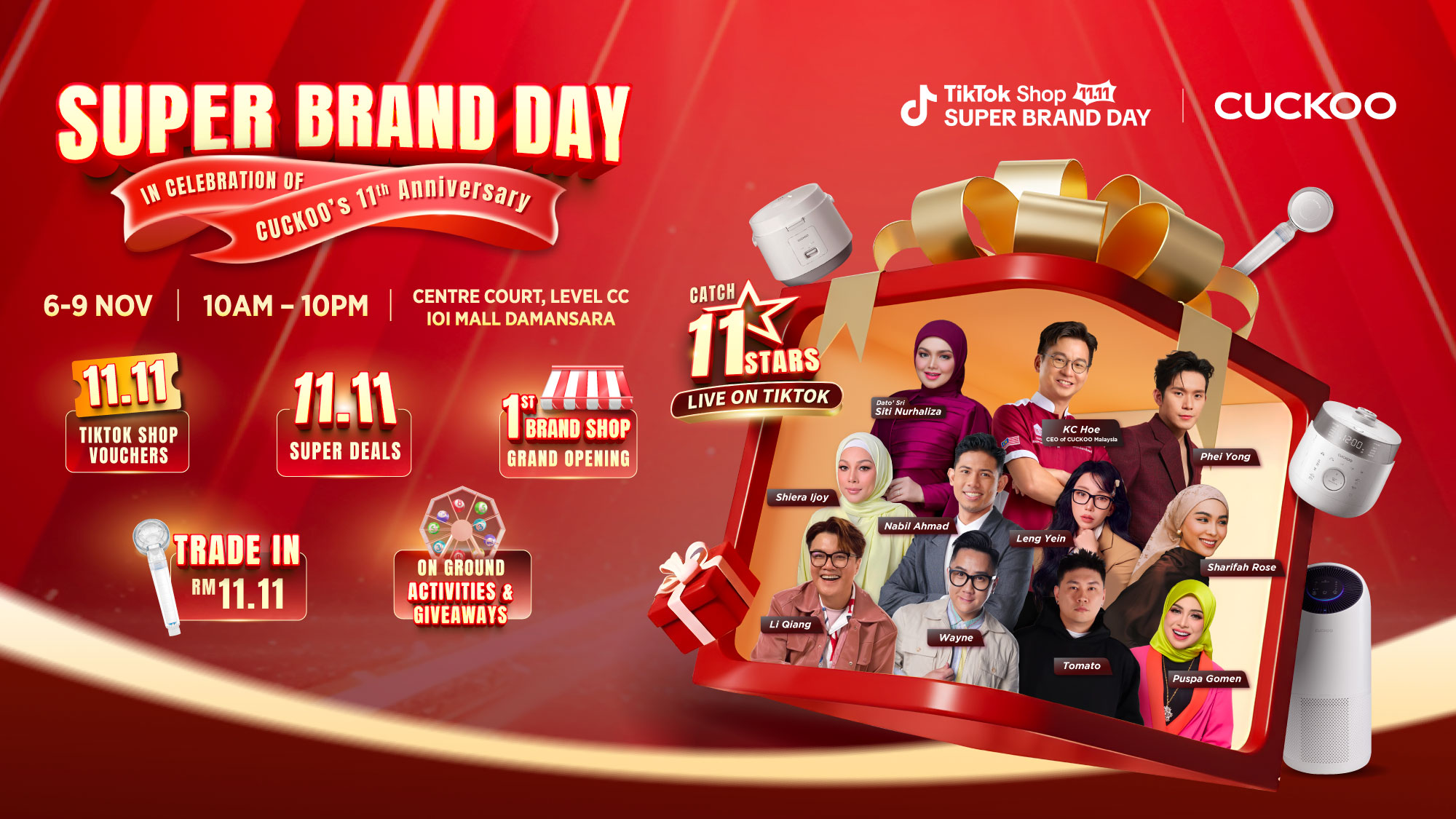 CUCKOO is turning 11 🎆, and we are celebrating big with 3 days of star-studded livestreams and limited-time deals, only at CUCKOO and TikTok Shop’s Super Brand Day in IOI Mall Damansara! 💃🏻😍