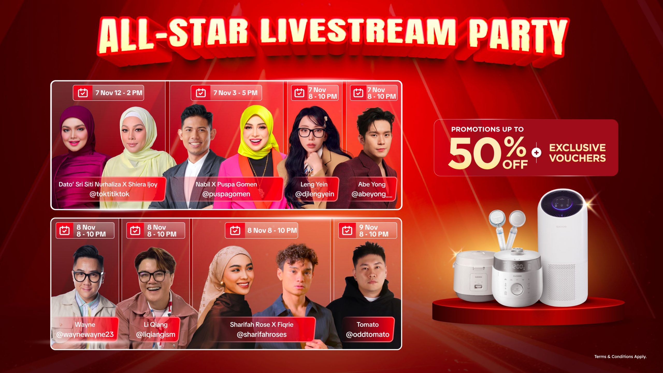 | 7 Nov (Friday) | 12PM – 2PM | Dato’ Sri Siti Nurhaliza× Shiera Ijoy | @toktitiktok | On Ground |