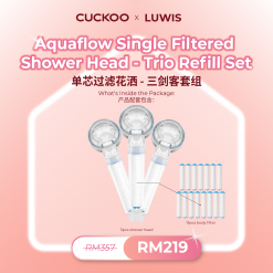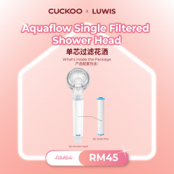 | Product Package | – 1pc of CUCKOO Aquaflow Single Filtered Shower Head- 1pc of sediment filter (body filter) | |