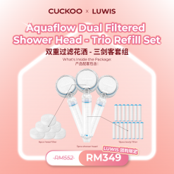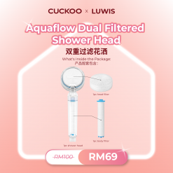 | Product Package | – 1pc of CUCKOO Aquaflow Dual Filtered Shower Head- 1pc of head filter- 1pc of sediment filter (body filter) | |