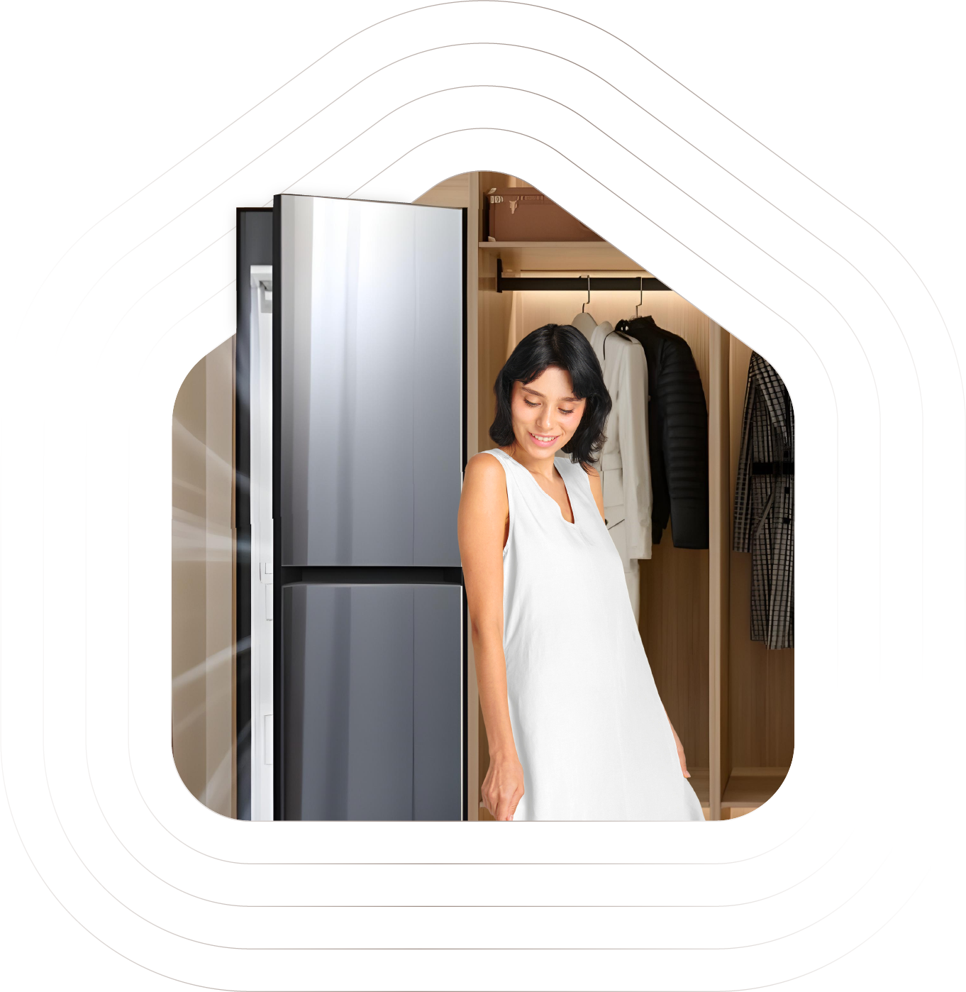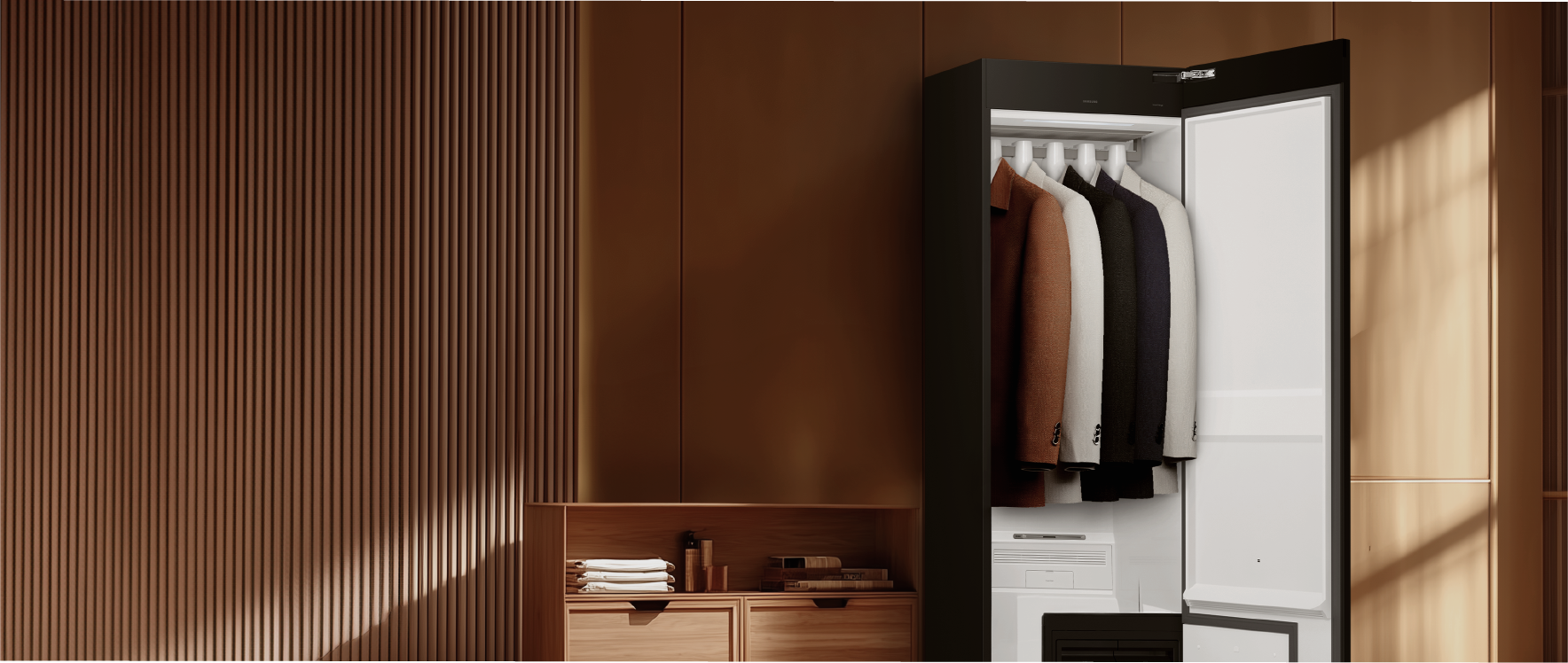 [Hygiene Care]* Based on testing by the preclinical laboratory of the College of Pharmacy, Korea University. Test method: attach a cotton fabric (8×8cm) contaminated with a virus to 5 shirts and run the Sterilisation course. Result: eliminates 99.9% of certain viruses, including Influenza A, Adeno (ICHV – Infectious canine hepatitis virus), Corona (PEDV – Porcine epidemic diarrhea virus), Herpes (IBRV – Infectious bovine rhinotracheitis virus), Entero, Rhino, Rota, Influenza B, Hepatitis A and Norovirus. Results may vary depending on the actual usage environment.Based on testing by Intertek. Test method: attach a cotton fabric (10×10cm) contaminated with bacteria to 5 shirts and run the Sterilisation course. Result: eliminates 99.9% of certain bacteria, including Staphylococcus aureus, Escherichia coli, Pseudomonas aeruginosa, Klebsiella pneumoniae, MSRA, Pneumococcus, Diphtheria, Legionella and urinary tract infection. Results may vary depending on the actual usage environment. Based on testing by Intertek. Test method: attach a cotton fabric (8×8cm) contaminated with house dust mites to a dry 100% cotton shirt and run the Sterilisation course. Result: eliminates 100% of house dust mites (Dermatophagoides Farinae). Results may vary depending on the actual usage environment. Based on testing by Hanyang University, verified by Intertek. Test method: apply grass, birch, ragweed, and Japanese cedar pollen to ISO cotton test material, leave for 8 hours, run the Fine Dust course and then measure the removal rate. Result: removes 90% of grass, birch, ragweed, and Japanese cedar pollen. Results may vary depending on the actual usage environment. Based on internal testing, verified by Intertek. Test method: use standard fabric (15x15cm) contaminated with Perchloroethylene (dry cleaning material) and run the standard course. Result: removes 99.4% of Perchloroethylene on average. Results may vary depending on the actual usage environment.