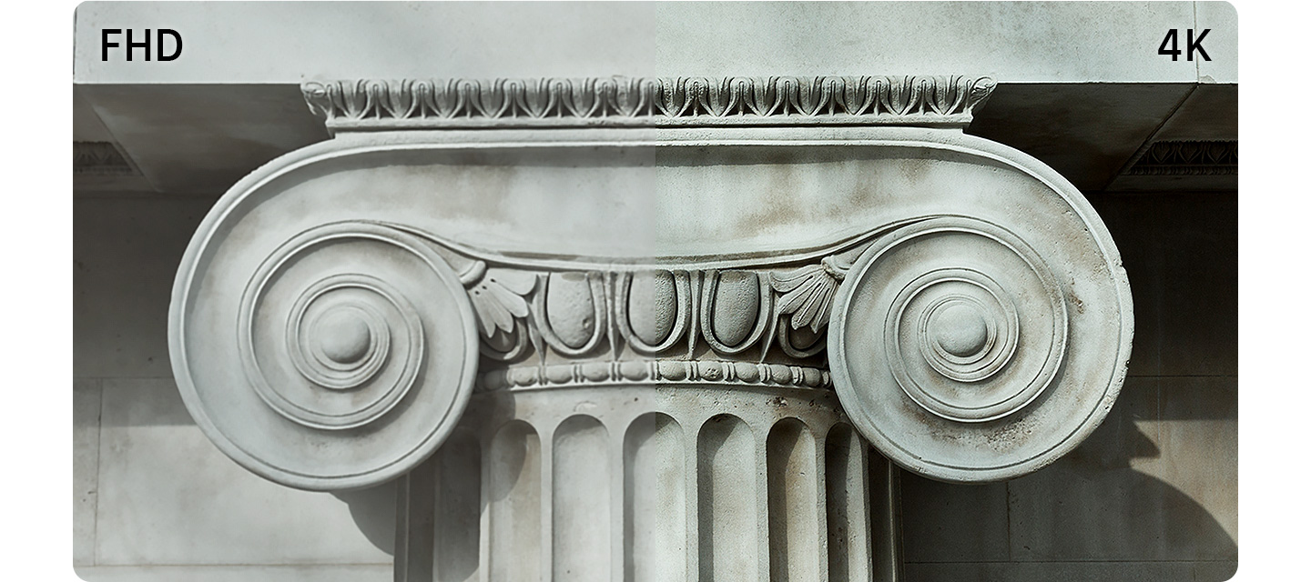 Make out the small details in every scene. 4K UHD resolution has 4x more pixels than regular FHD resolution — giving you sharp, ultra-realistic images.