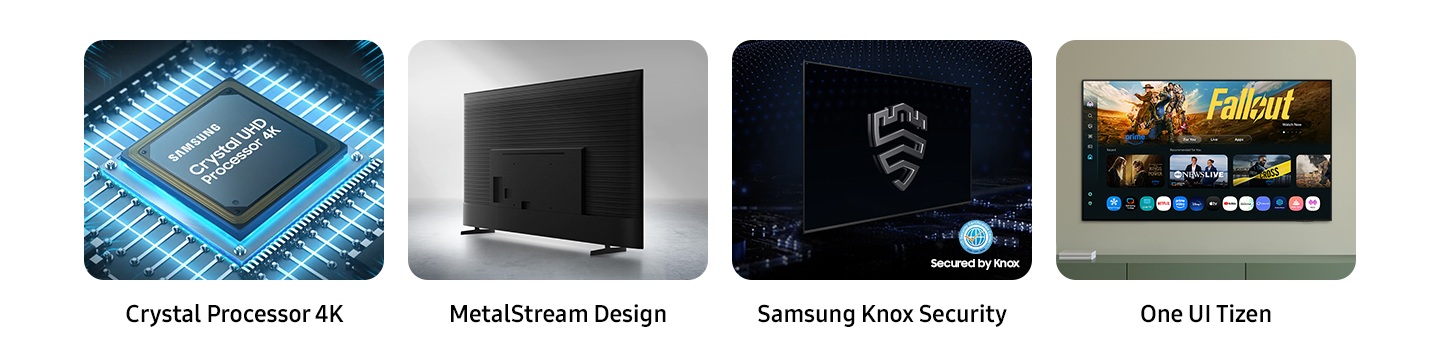* Content and services may vary by region and are subject to change without notice.* Agreement to Smart Hub Terms and Conditions and Privacy Policy is required before use.* Some content and services require registration and subscription.* Requires Samsung account.* Tizen OS upgrades will be supported for up to 7 years starting from 2025, for products released in the year 2025.* Please note that the upgrade does not cover hardware-related performance, features or durability.