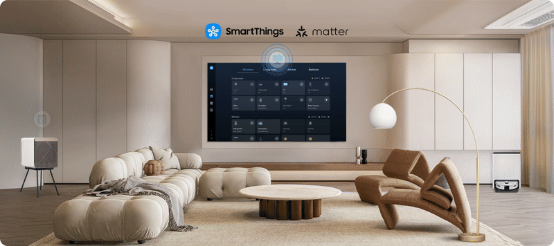 With a built-in smart hub, your TV can connect and control smart devices — even those requiring Matter and HCA compatibility. You can also receive notifications about your devices straight from the screen, including a 3D Map View that shows your entire smart home system at a glance.
