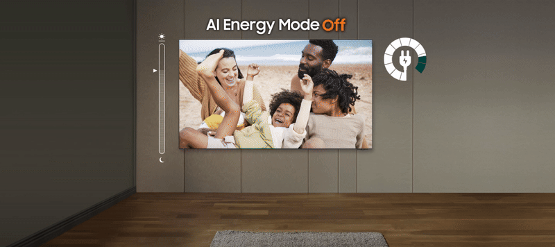 * Energy saving rate may vary by region, model, size, viewing conditions and type of content. * Products shipped in Eco Mode have some AI Energy Mode functions enabled by default, so energy saving levels when AI Energy Mode is turned on may appear lower compared to Standard Mode.* AI Energy Mode does not work with Game Mode.* Energy savings are based on internal test results and may vary depending on the content being displayed and surrounding brightness levels.